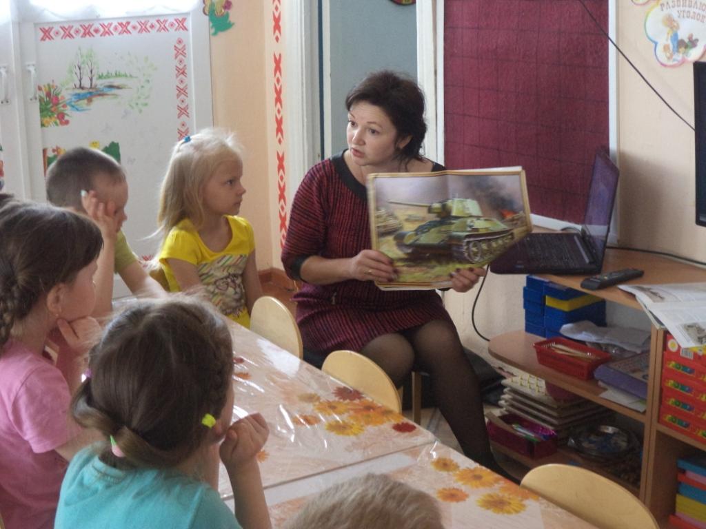 Для современных школьников Великая Отечественная война – это событие далекого прошлого. Но ее имена, даты, события до сих пор остаются значимыми вехами нашей истории, трагическими и победными. Они по праву должны сохраниться в памяти людей настоящего и будущего. В год празднования 74-й годовщины Победы советского народа в Великой Отечественной войне встает вопрос о том, как привлечь внимание учащихся к этой дате. Сделать разговор о войне не формальным, а запоминающимся и трогающим душу. С этой целью в преддверии празднования знаменательной даты сотрудниками Детской библиотеки были проведены мероприятия: час памяти "Мы не забудем Вас, Герои! " для учащихся 4 и 5 классов и для детей детского сада №2 и №3 час мужества «Т-34 – танк нашей Победы». Совместно с ребятами вспомнили о тяжелых военных испытаниях в истории нашей страны, о людях, ковавших Победу на фронтах Великой Отечественной войны и в тылу, познакомились одним из видов военной техники – танком нашей Победы Т-34. В сопровождении медиапрезентаци узнали о конструкторе Михаиле Кошкине, о единственной женщине – танкисте Марии Октябрьской, посмотрели познавательный видео ролик о Т-34.